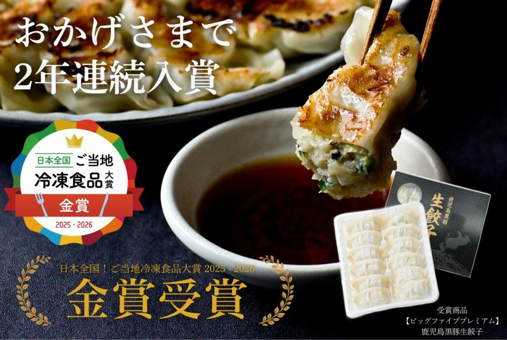 ホーム > 「ビッグファイブプレミアム鹿児島黒豚生餃子」が、一般社団法人未来の食卓さまが実施された、第2回「日本全国!冷凍食品大賞2025-2026」にて、金賞を頂きました〜〜〜✨🎖️👏🥰